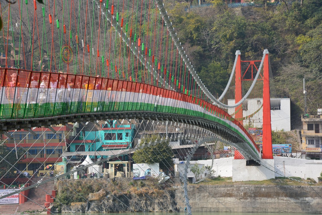 Petit aparté : le pont à Rishikesh est plutôt sympa de jour, avec ses couleurs indiennes. Par contre le soir il montre un autre visage, un peu plus kitsch.